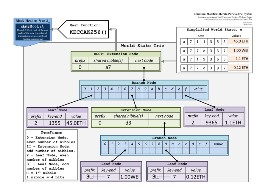 Ethereum uses account model,and it is a state machine and supports Turing’s complete smart contract. It is very powerful compared to Bitcoin scripts. The WorldState at the bottom of Ethereum uses MPT (Merkle Patricia tree) to record the entire state transition of Ethereum. Ethereum’s EVM spends a large part of the time on reading WorldState when executing smart contracts.